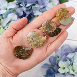 Support longevity, memory, and past-life recall with our Mini Opalized Ammonite Fossil, sliced in half to showcase the beautiful interior.