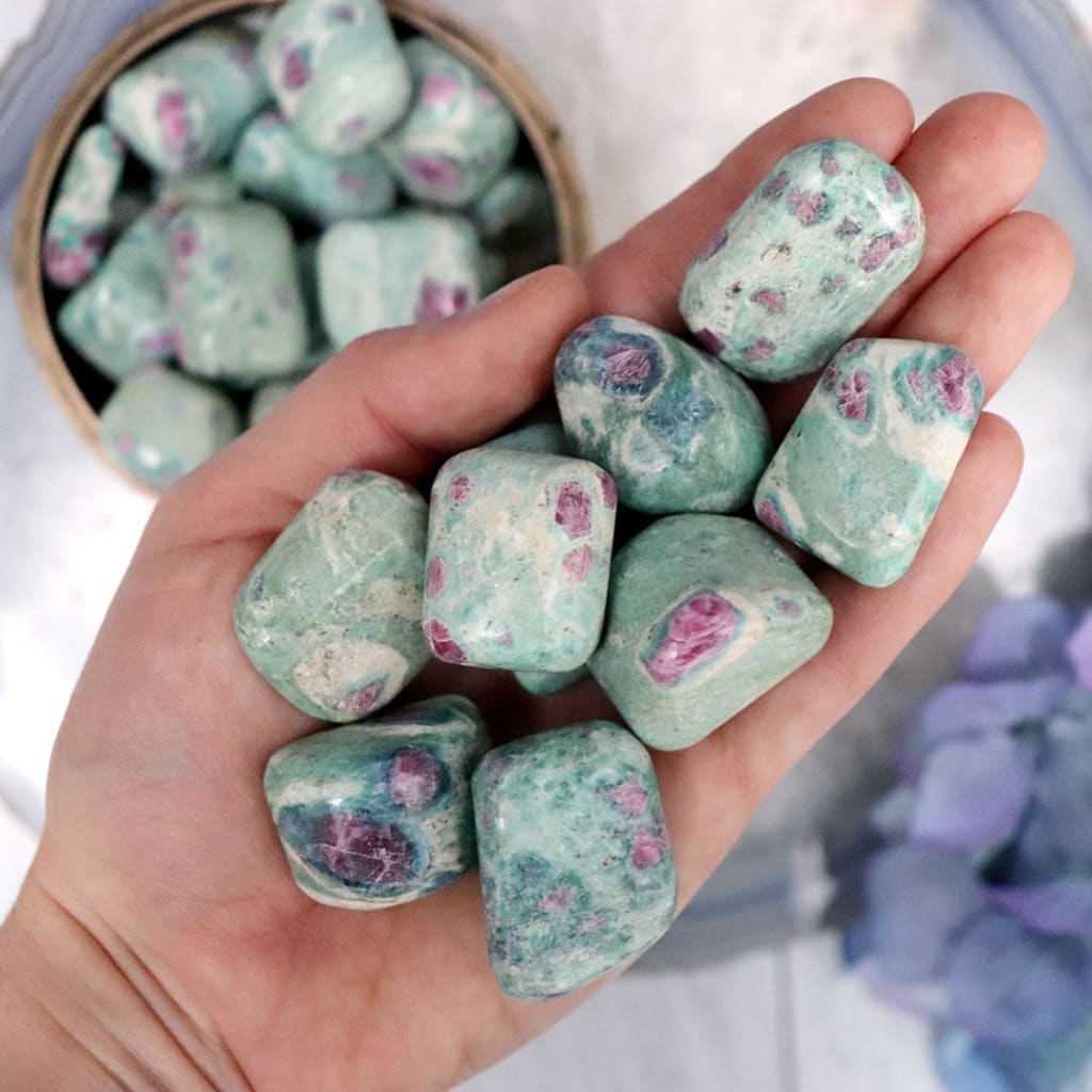 Discover strength, love, transformation, and confidence with our Ruby Fuchsite in Kyanite Pebble.