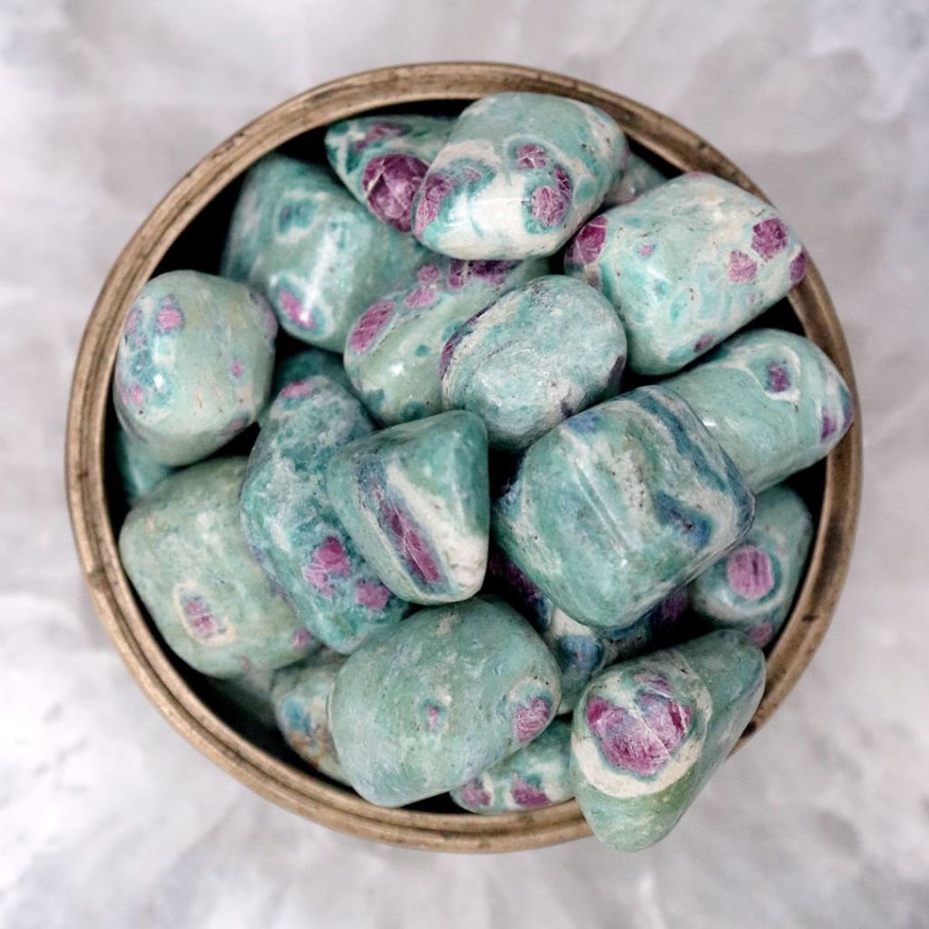 Working with the Heart and Root Chakras with emotional support from Green Fuchsite and the grounding of Ruby, Ruby Fuchsite offers strength, love, transformation, and confidence. It can facilitate determination, motivation, passion, and compassion.
