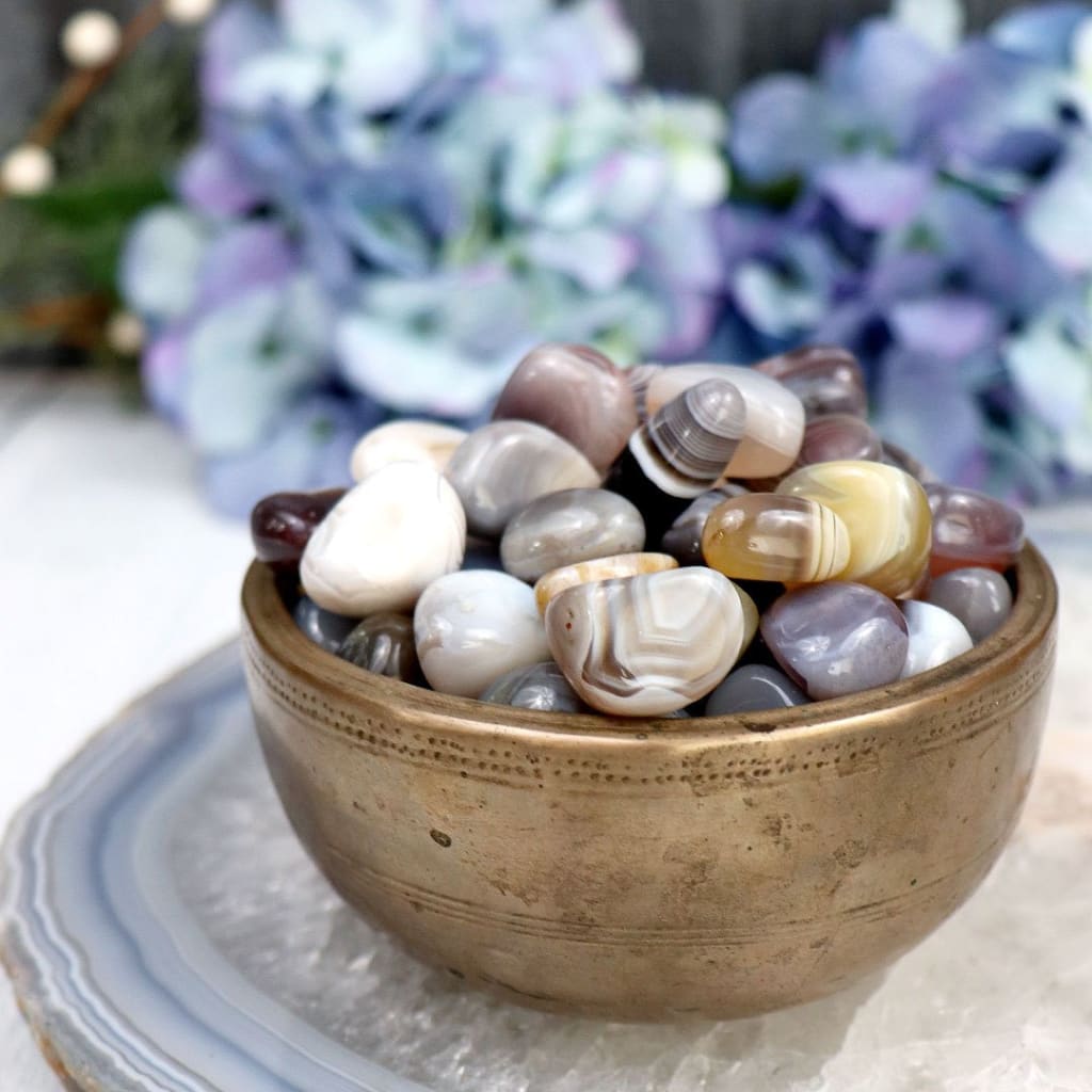 Bring peace and stability into your life with our Grey Botswana Agate Tumble, known to improve focus and perpetuate a sense of well-being.