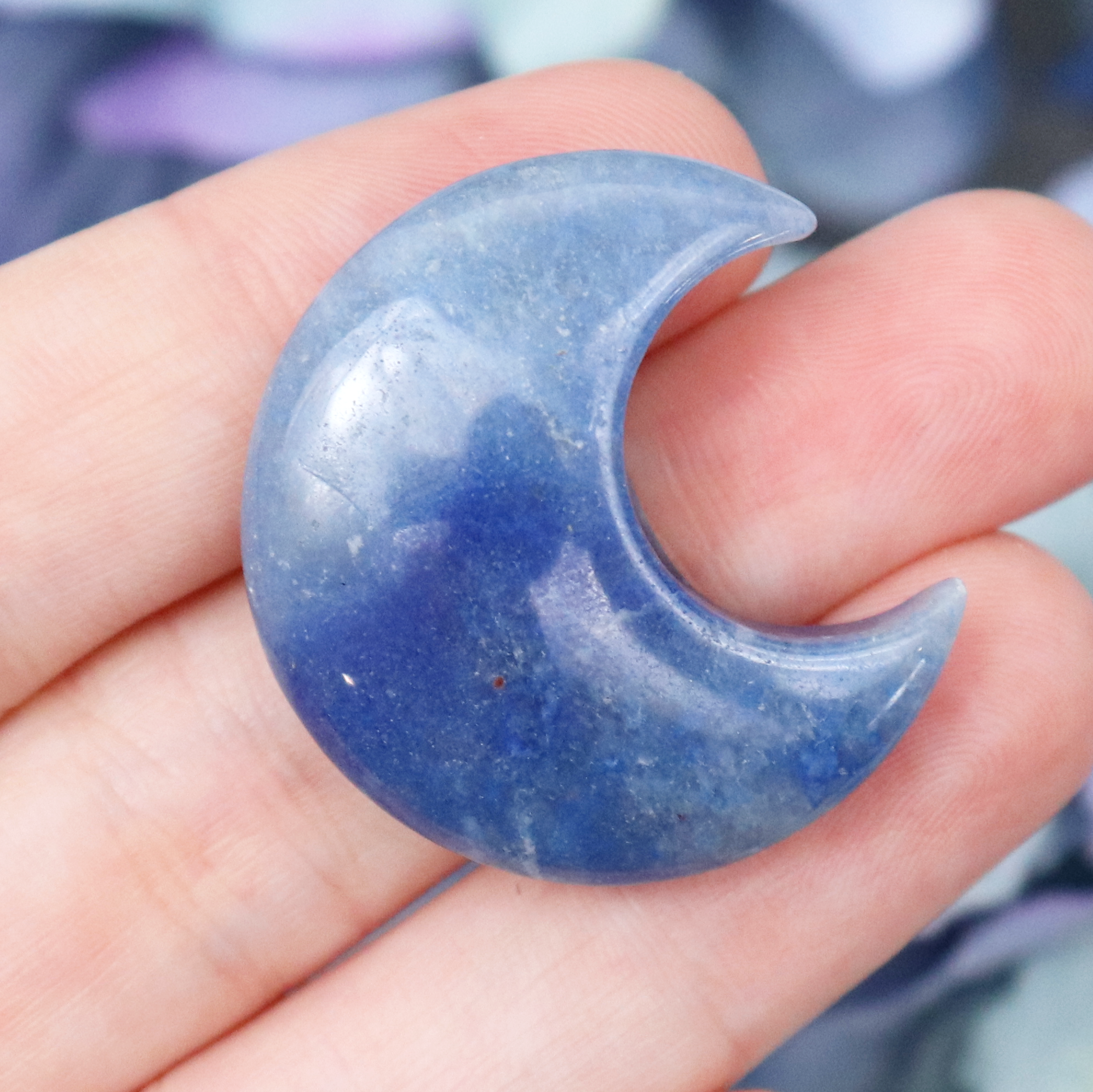 Gently open the heart and the mind with our Dumortierite Mini Moon.