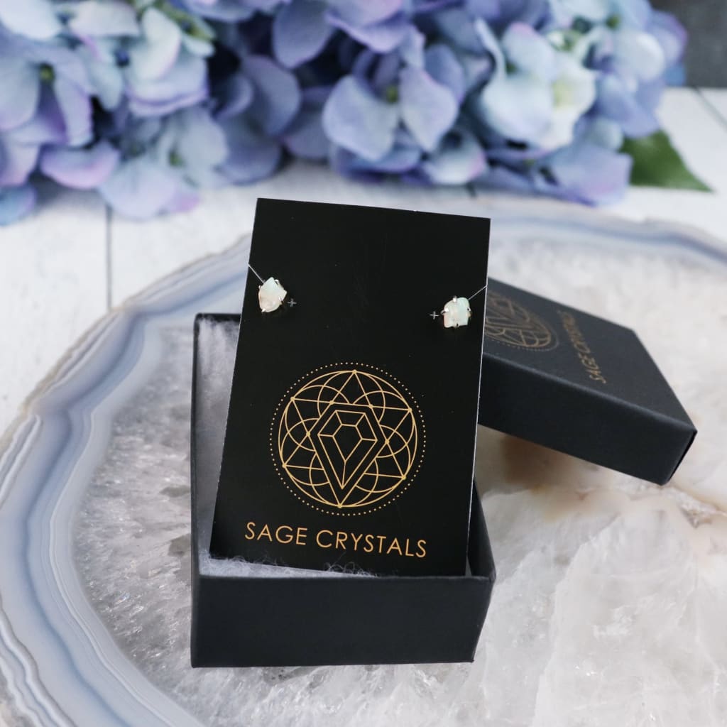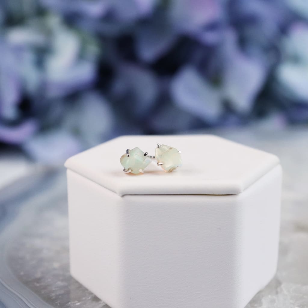 Calm worry and alleviate stress with our Raw Ethiopian Opal Stud Earrings in a sterling silver prong setting.