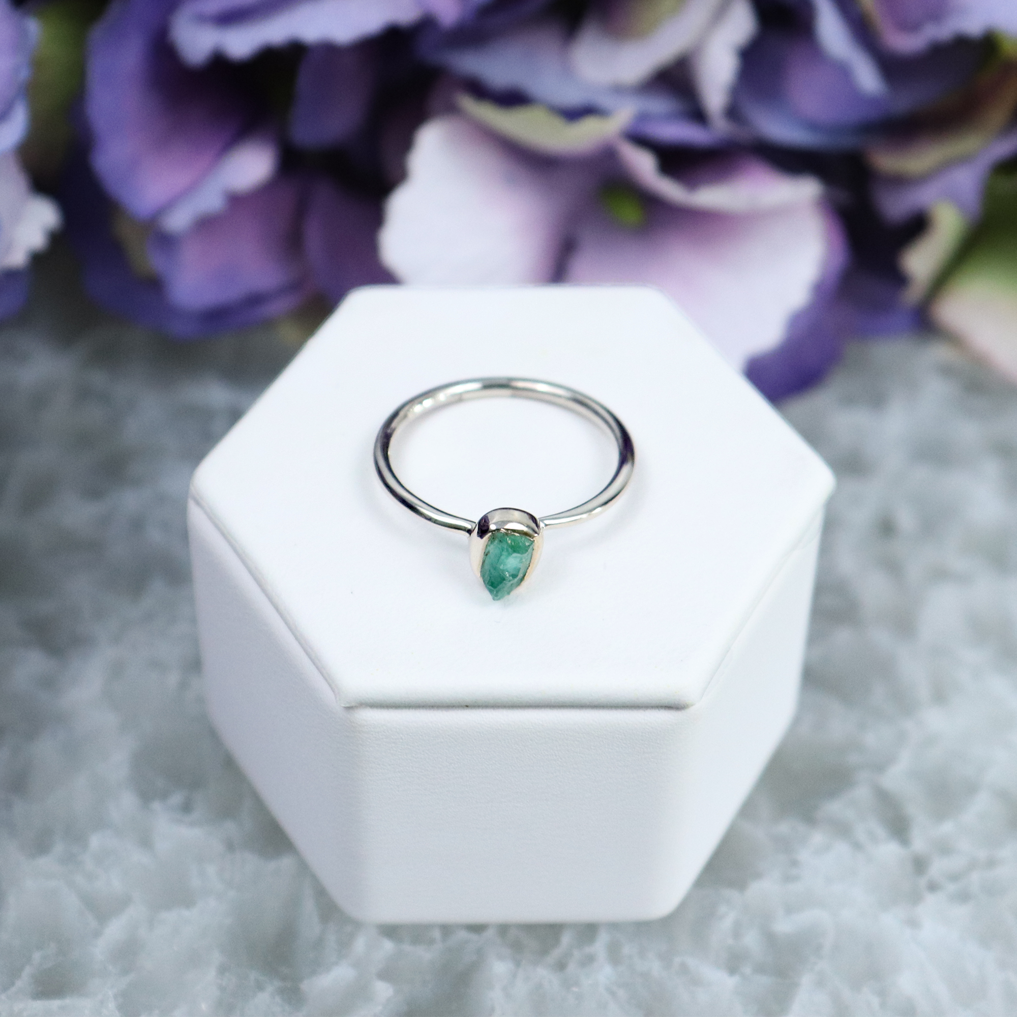 Raw Emerald Sterling Silver Ring - Bezel-set