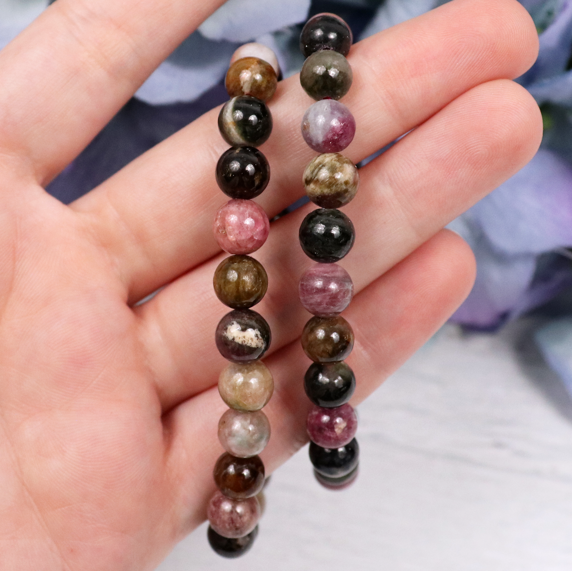 Call in kind, protective energy with our Mixed Tourmaline Bracelet, excellent for feeling safe and grounded. These bracelets include a rich medley of mixed Green, Pink, Red, Blue, Watermelon, and Black Tourmaline beads.