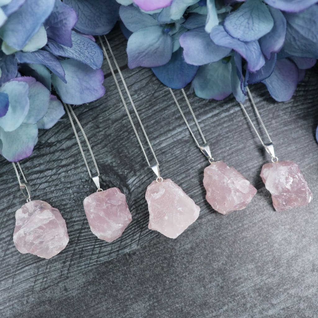 This listing is for one necklace with an intuitively selected raw rose quartz pendant. Each piece is a natural stone, and as such, may vary in color and appearance. Includes one sterling silver or stainless steel chain in the chosen length.