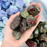 Dragon's Blood is a stone of courage. A strengthener of the physical and etheric bodies, Dragon's Blood works very well for knitting the two of them together, when illness or other negative conditions have brought our vitality down.