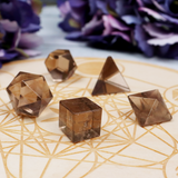 Diffuse negativity and release emotional blockages with our Smokey Quartz Mini Platonic Solid Set.