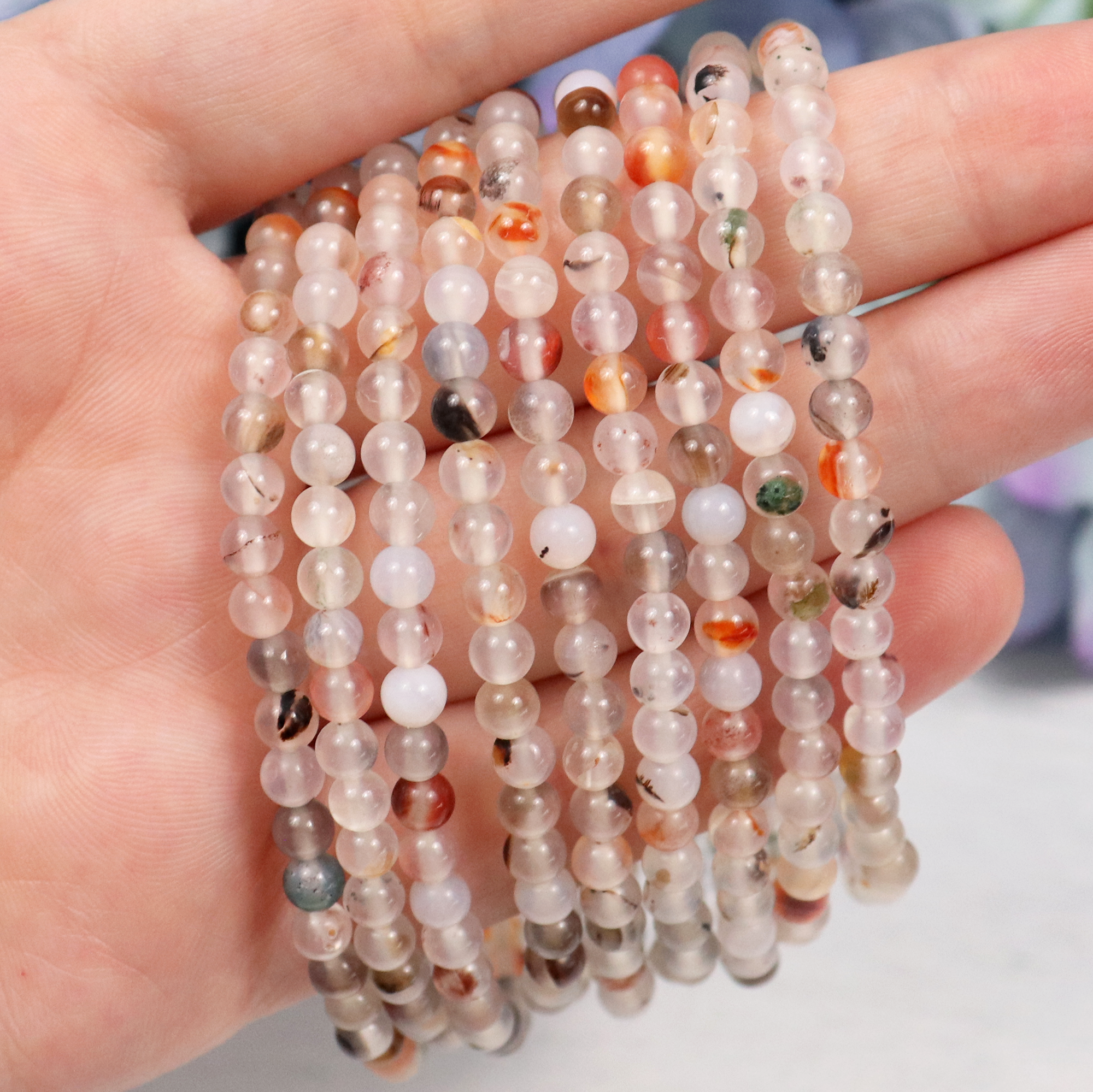 This listing is for one intuitively selected Bracelet with 4mm beads. Each piece is carved from natural stone, and as such, may vary in color and appearance.