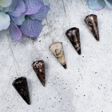 This listing is for one intuitively selected Pendulum. Each piece is carved from natural stone, and as such, may vary in color and appearance.