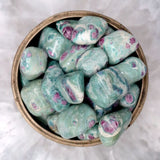 Discover strength, love, transformation, and confidence with our Ruby Fuchsite in Kyanite Pebble.