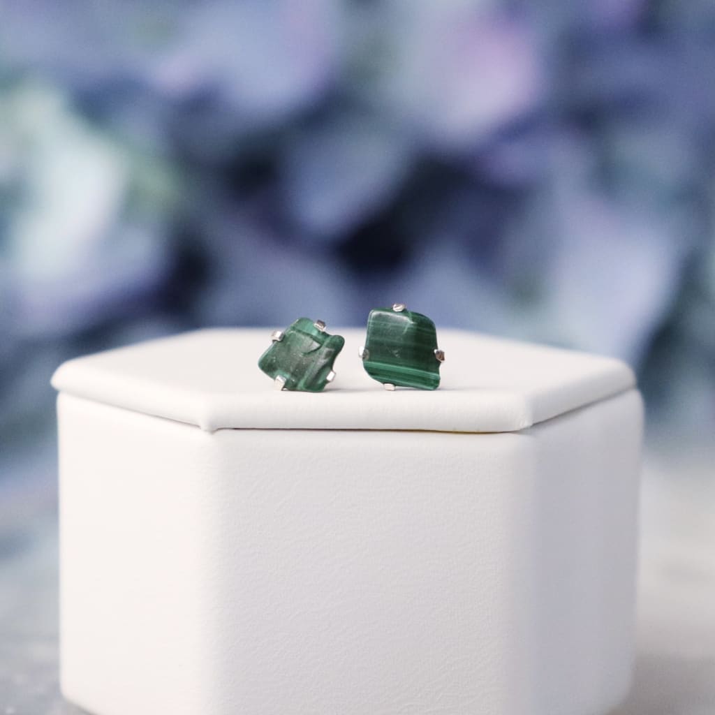 Become an enlightened leader with our Natural Malachite Stud Earrings in a sterling silver prong setting.