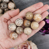 Find deep grounding to temper emotions and feel secure, calm, and at peace with our Fossilized Coral Mini Sphere.