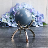 Display your prized crystal spheres with this Silver Clawed Specimen + Sphere Stand, a sleek and understated addition to any crystal collection.