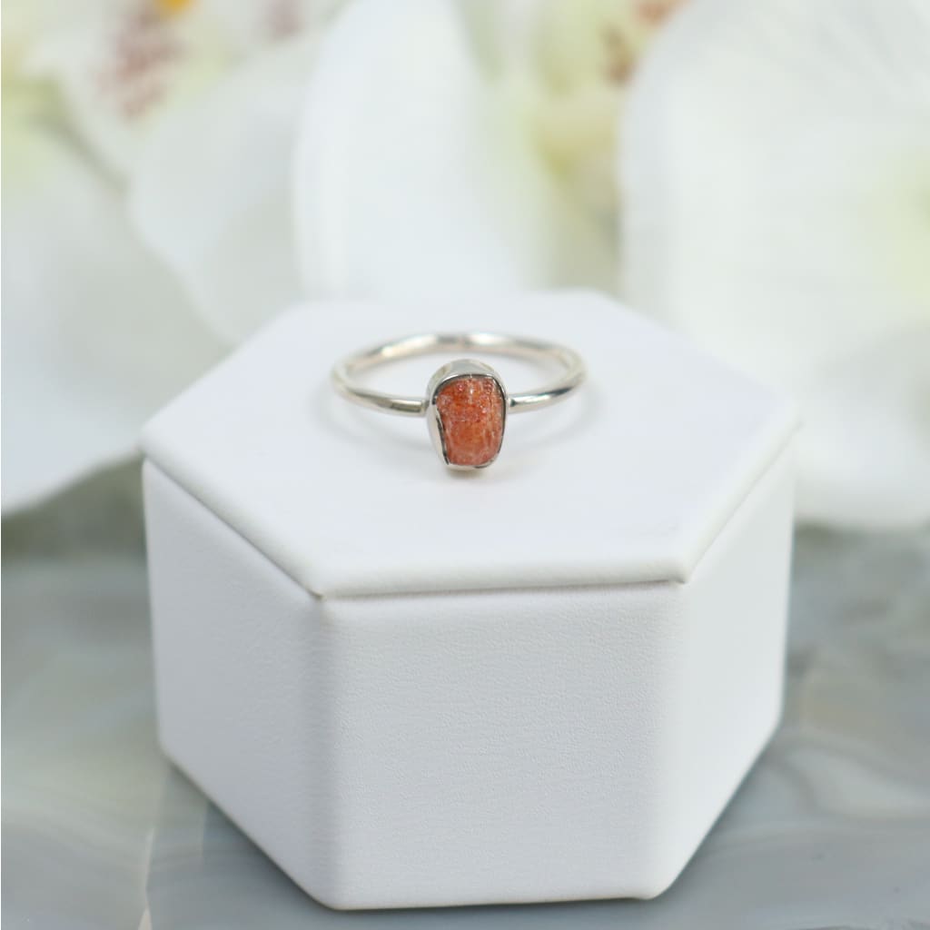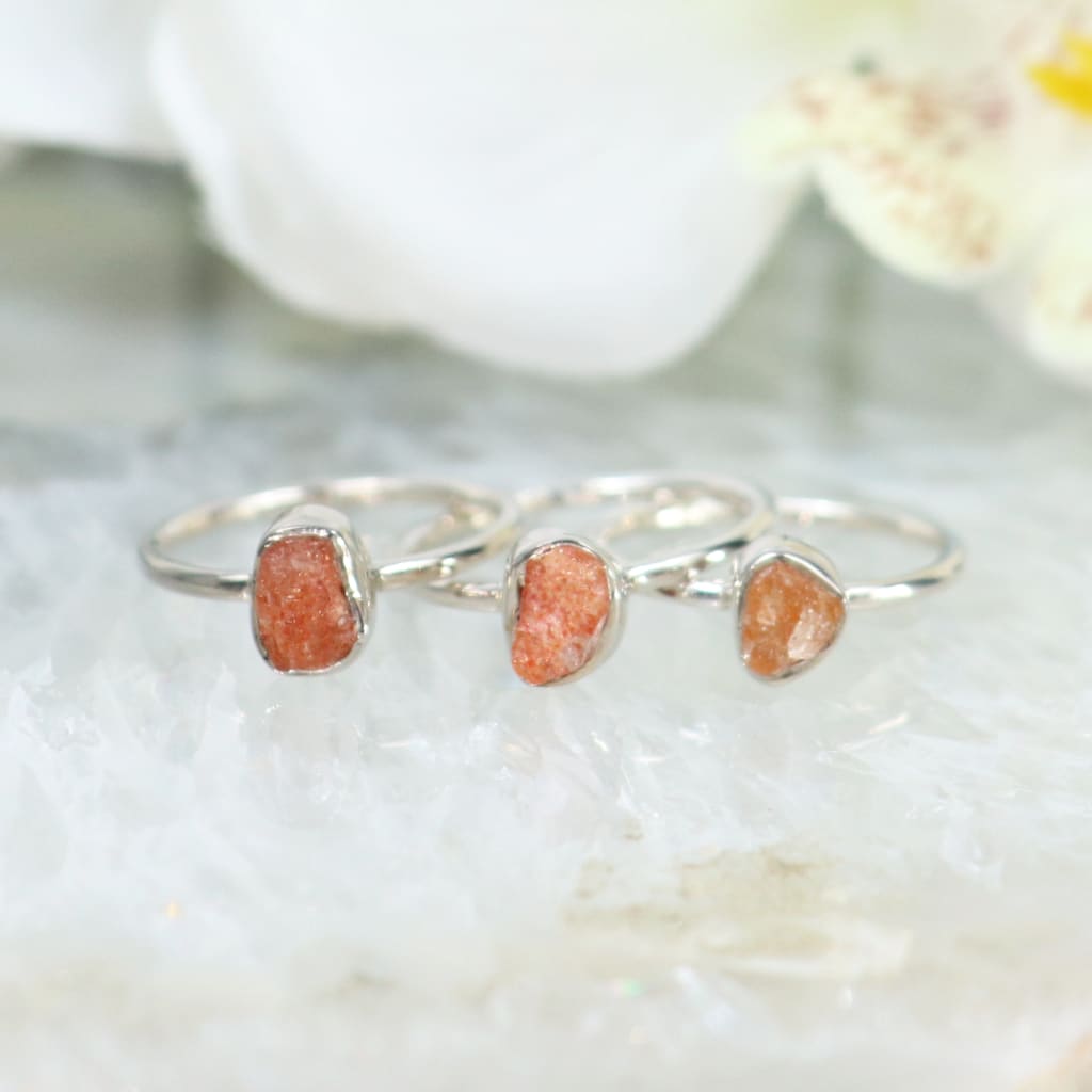 Raw Sunstone Sterling Silver Ring - Bezel-set