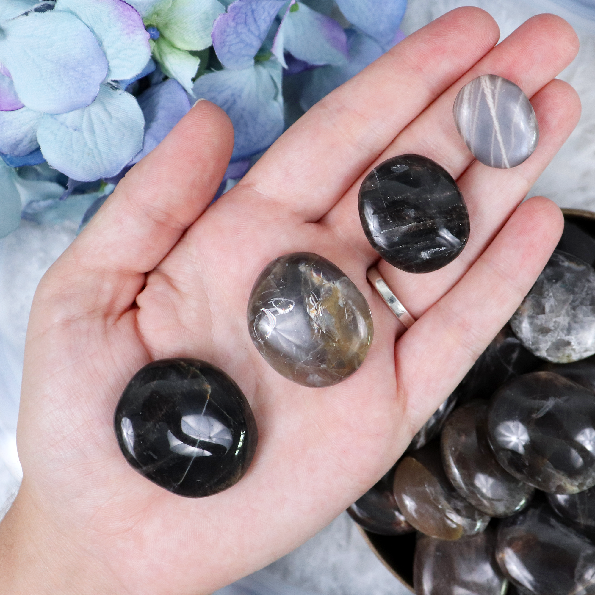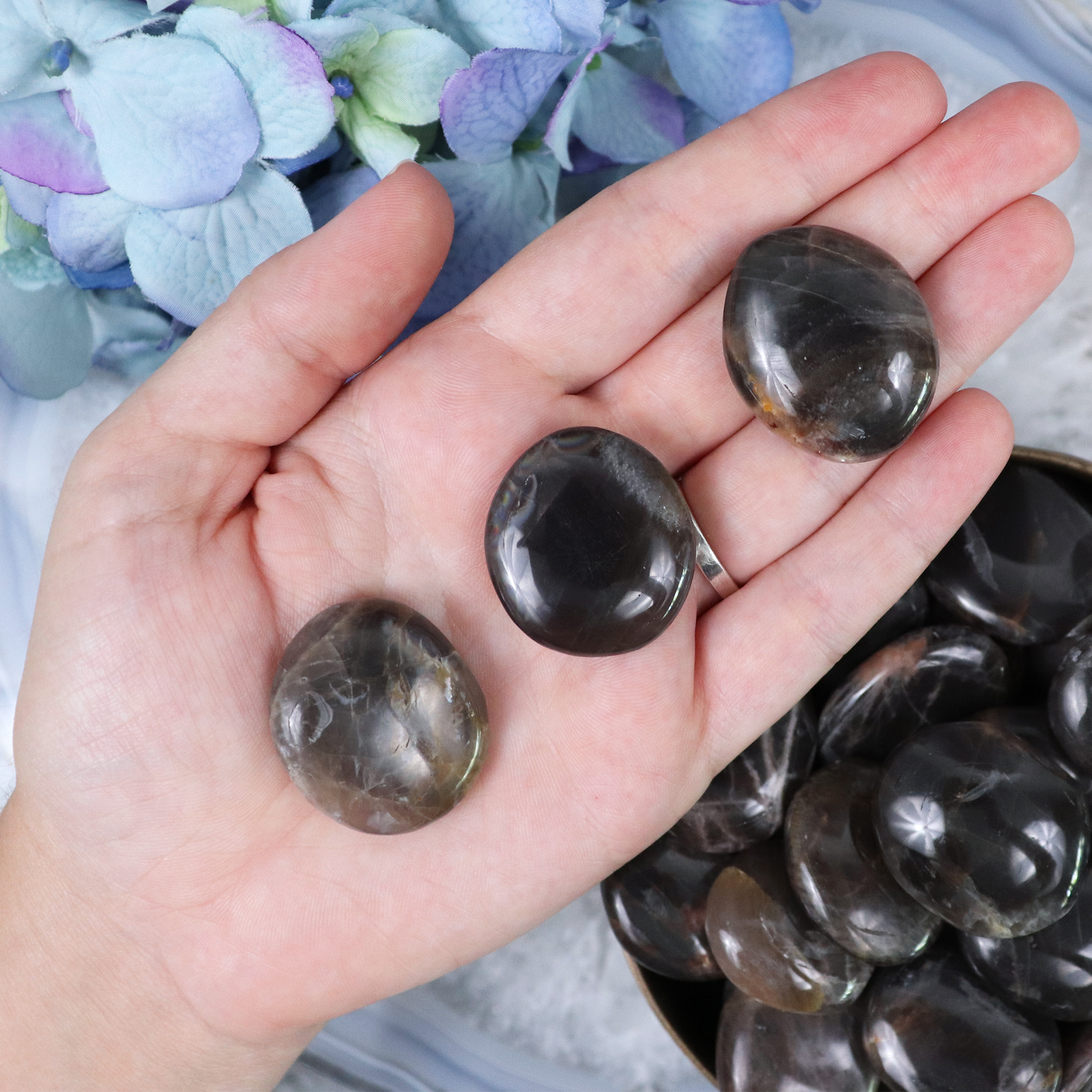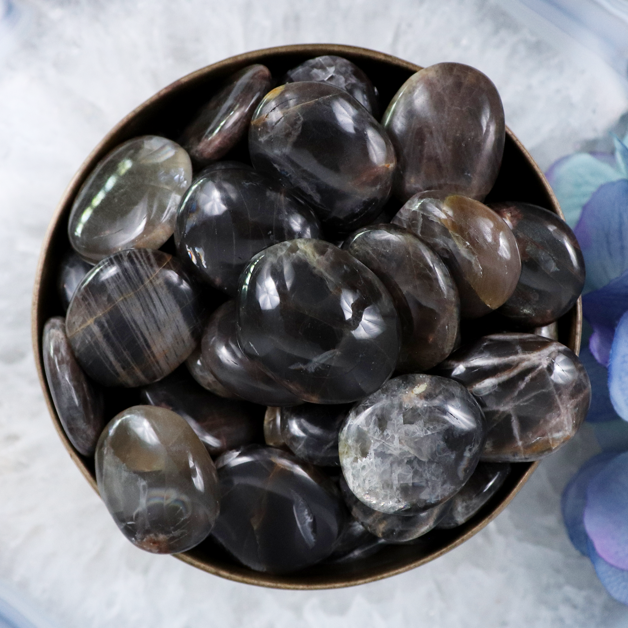 Black Moonstone can help us begin new careers, new relationships, pregnancies, or any new endeavor. These lovely flash-filled crystals provide a nourishing yet protective energy.