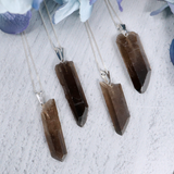 This listing is for one necklace with an intuitively selected smokey quartz point pendant. Each piece is a natural crystal, and as such, may vary in color and appearance. Includes one sterling silver or stainless steel chain in the chosen length.