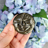Dissolve negativity and connect with the beyond with our beautifully hand-carved Sun& Moon Gold Sheen Obsidian Talisman.