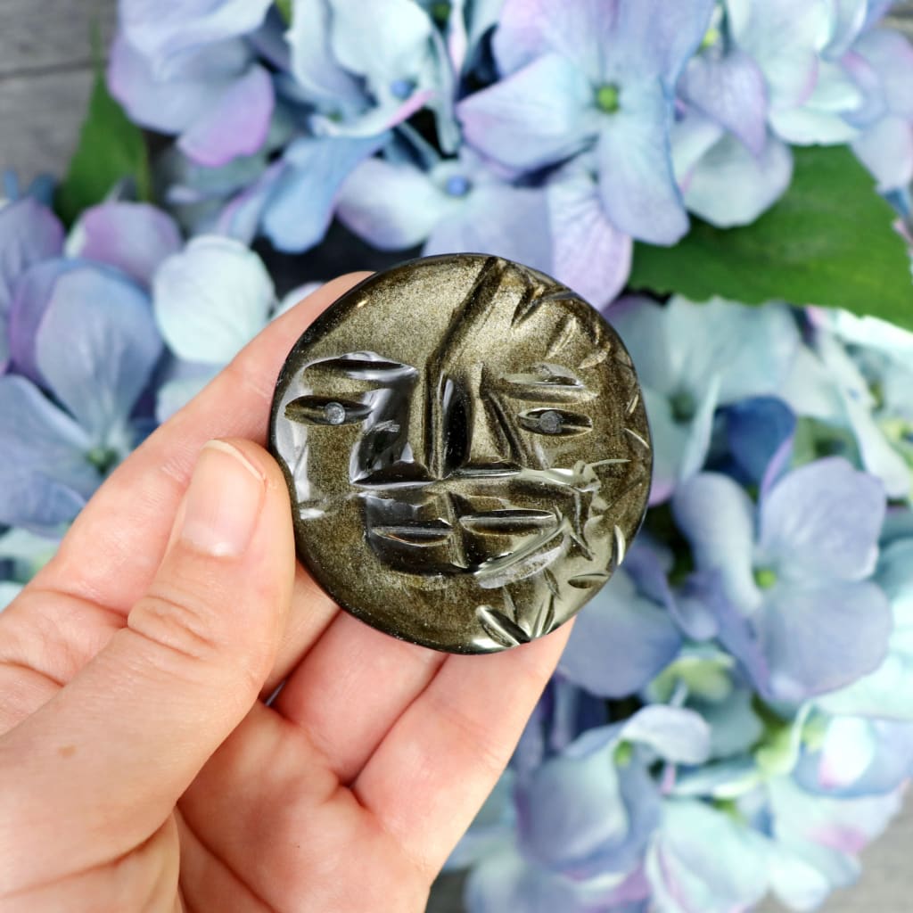 Gold Sheen Obsidian Sun & Moon Talisman - Hand Carved!
