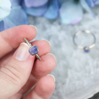 Raw Tanzanite Sterling Silver Ring - Prong-set