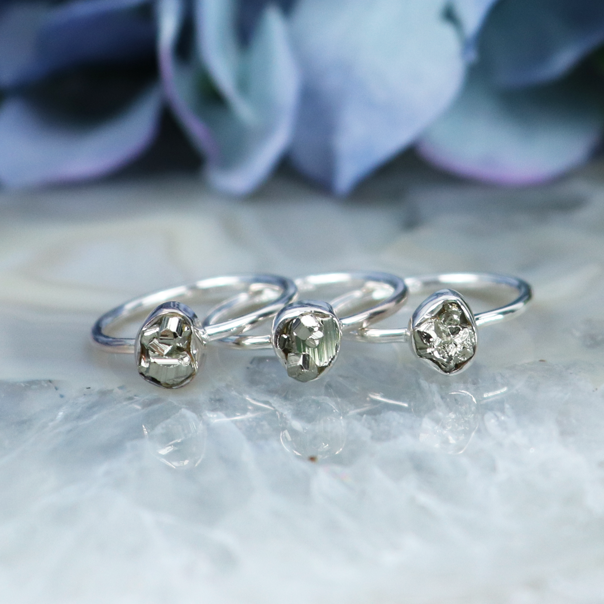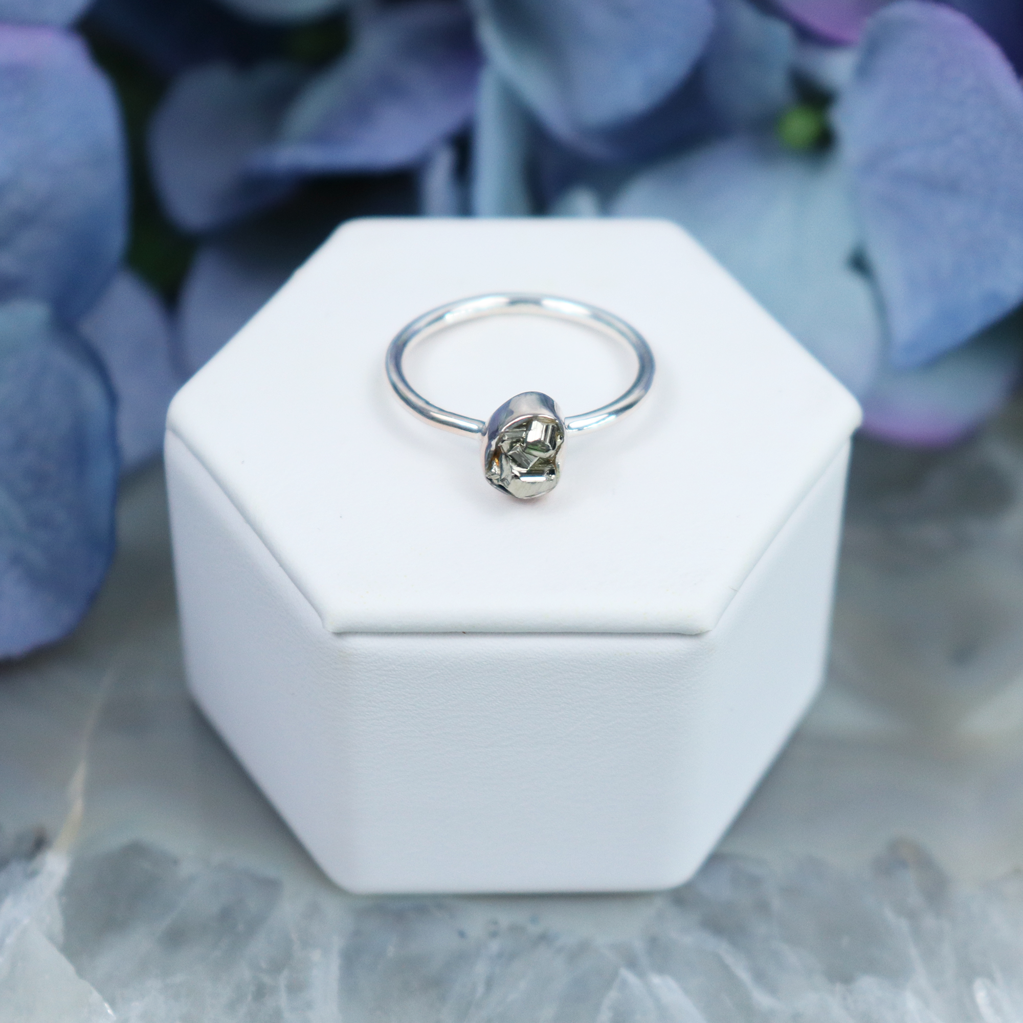 Raw Pyrite Sterling Silver Ring - Bezel-set