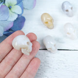 This listing is for one intuitively selected Skull that measures approximately 1.75" in size. Each piece is carved and polished from natural stone, and as such, may vary in color and appearance.