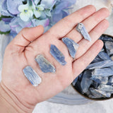 Blue Kyanite's light to deep blue energy stimulates, activates, opens, and heals the Throat and Third Eye Chakras. Kyanite encourages self-expression, speaking our truth, and all types of connection. Kyanite is a wonderful crystal to help easy communication.