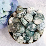 Bring inner peace and stability into life with our Green Tree Agate Tumble, a stone that imbues with calming powers of nature to those in its presence.
