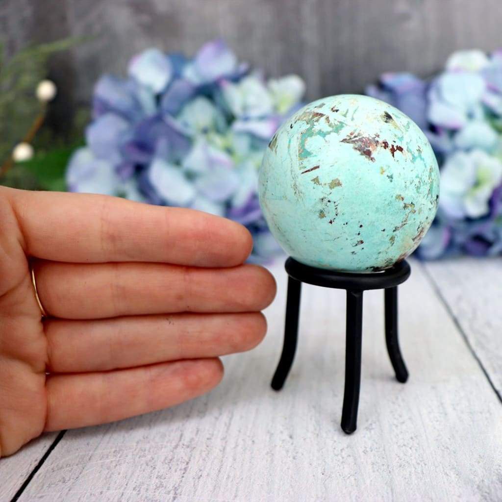 Display prized crystal spheres with this Black Sphere Stand, a sleek and understated addition to any crystal collection.